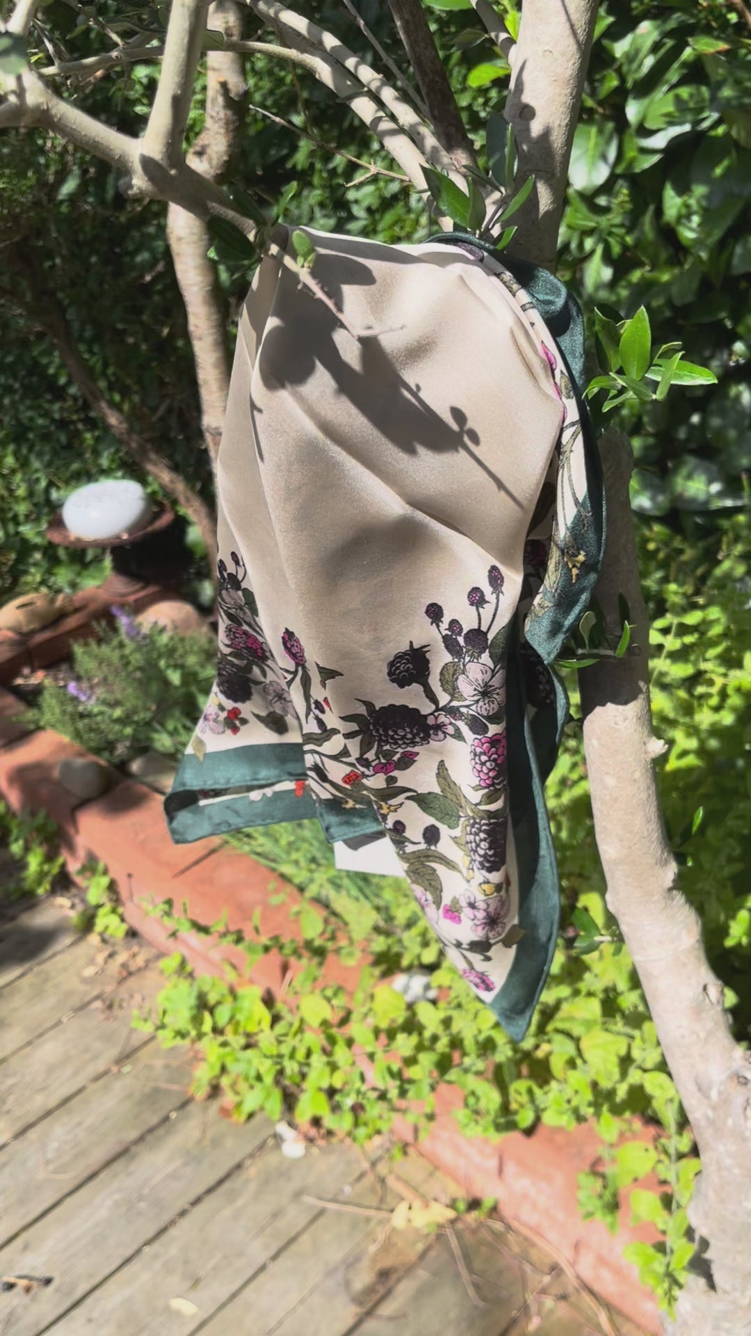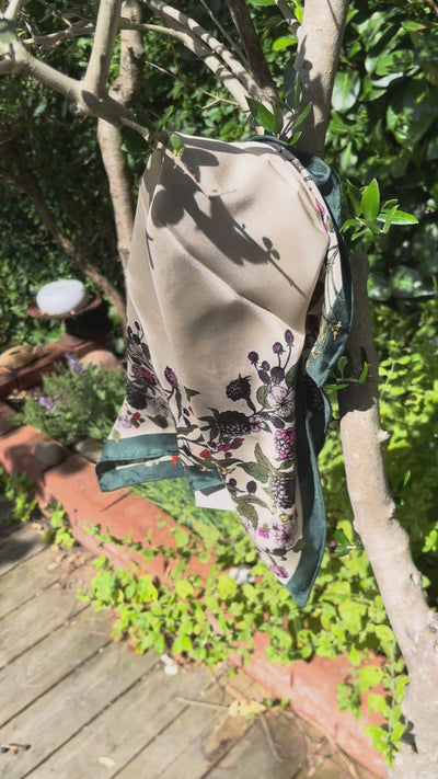 Skøn lille firkantet tørklæde i dusede farver fra Beck Søndergaard. Et stilfuldt silketørklæde, der måler 65 X 65 cm. Fremstillet i 100% silke. Det er både elegant og lækkert og har et smukt mønster, der tilfører et feminint og sofistikeret touch. Dette alsidige tørklæde kan bæres om halsen, i håret eller som en dekorativ detalje på din taske, og tilføjer et tidløst strejf af elegance og stil til ethvert outfit.